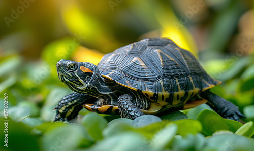© cyishu, Fototapeta premium Adorable Little Turtle Crawling through the Garden Grass