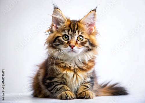 Fototapeta premium Adorable Maine Coon Kitten Side Profile, Long Exposure, White Background Stock Photo