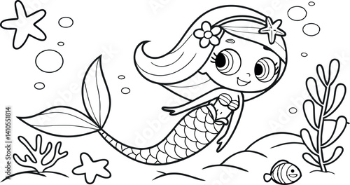 Fototapeta premium Adorable Mermaid Vector Symbol for Kids.eps