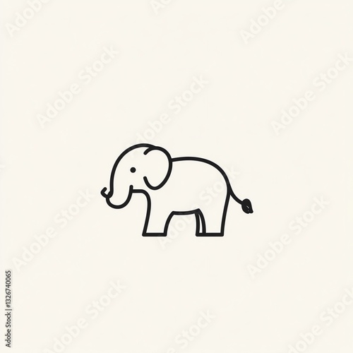 © Priyanut, Fototapeta premium Adorable Minimalist Elephant Illustration, a Simple Line Drawing on White Background. Perfect for Logos and Designs
