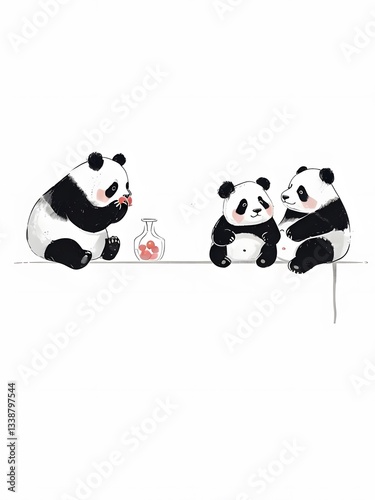© pachiv, Obraz premium Adorable Minimalist Panda Cubs Illustration T-shirt
