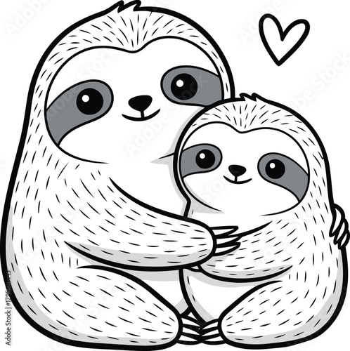 © Aly, Naklejka premium Adorable mother and baby sloth hugging with a heart symbol
