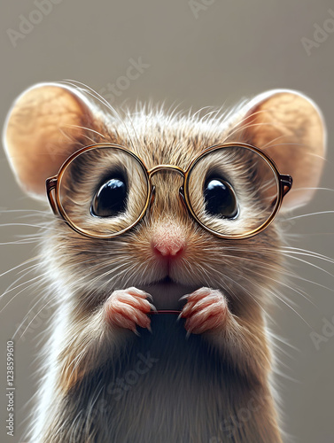 © Andsx, Obraz premium Adorable Mouse with Glasses: A Close-Up Portrait
