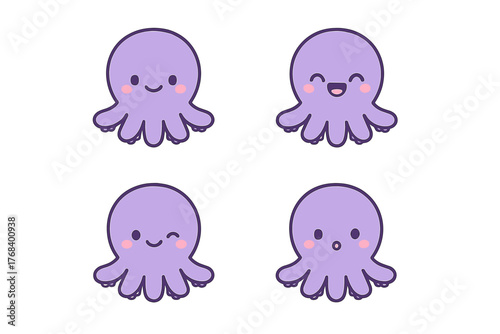 © Viktar, Obraz premium Adorable octopus cartoon icons or stickers, isolated flat vector illustration