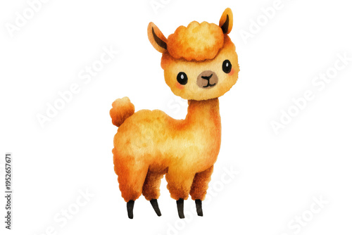 © Prazis Images, Naklejka premium Adorable Orange Alpaca Watercolor Illustration