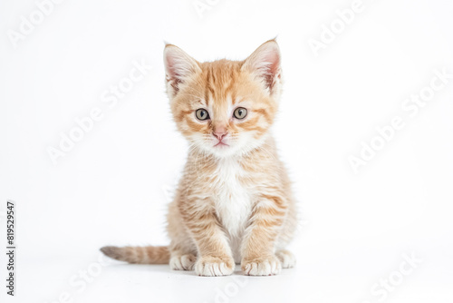 Fototapeta premium Adorable Orange Kitten Sitting on White Background