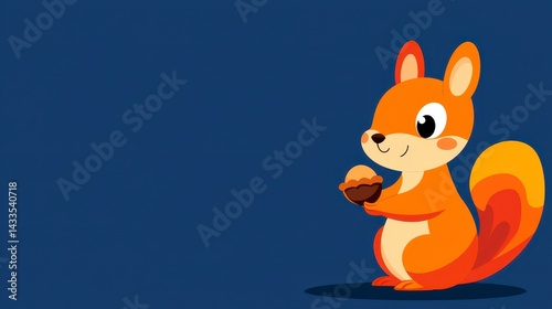 Obraz premium Adorable Orange Pixel Squirrel Holding Acorn on Blue