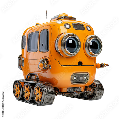 © THTA, Fototapeta premium Adorable Orange Robot on Tracks Futuristic Friendly AI Character