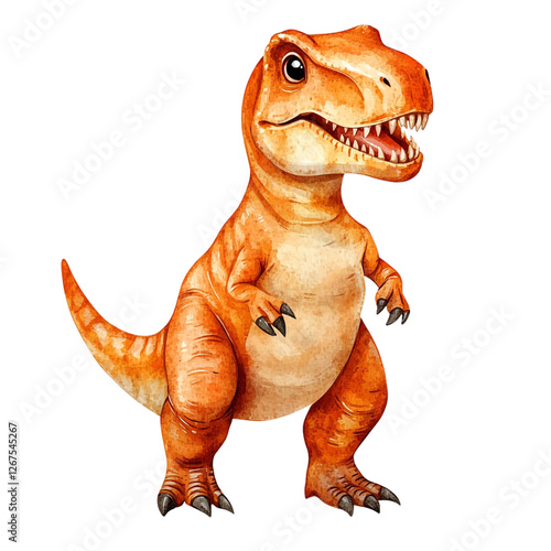 Naklejka premium Adorable orange T-Rex dinosaur watercolor illustration cute prehistoric creature