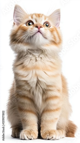 Obraz premium Adorable orange tabby cat sitting and looking up, showcasing its fluffy fur...