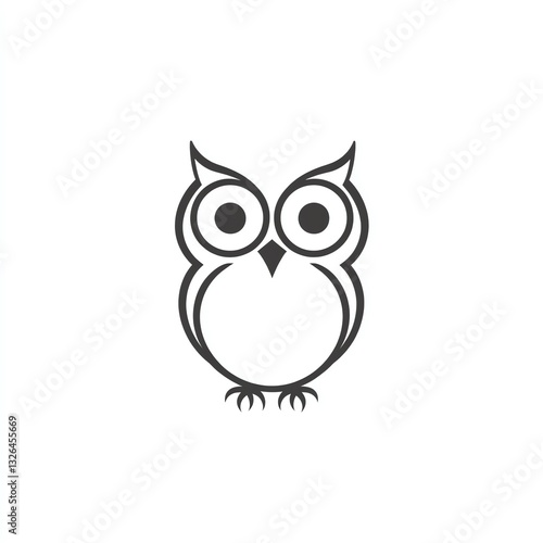 © Priyanut, Fototapeta premium Adorable Owl Minimalist Black Line Art Logo Design, a charming graphic featuring a cute owl.