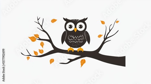 Fototapeta premium Adorable Owl Perched on Autumn Branch