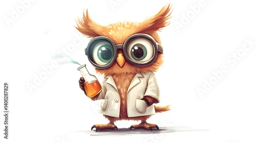 Fototapeta premium Adorable Owl Scientist in a Lab Coat with Beaker