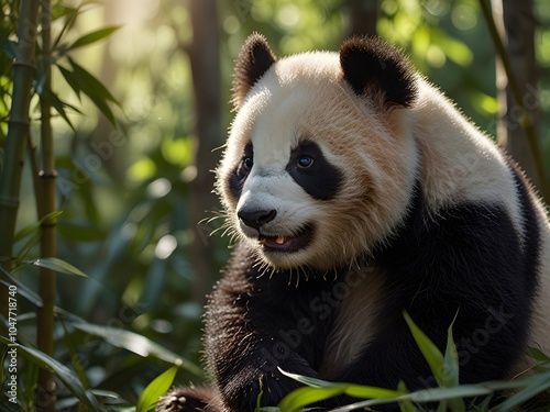 © Sokimimi Studio, Fototapeta premium Adorable Panda Bear Cub in Bamboo Forest