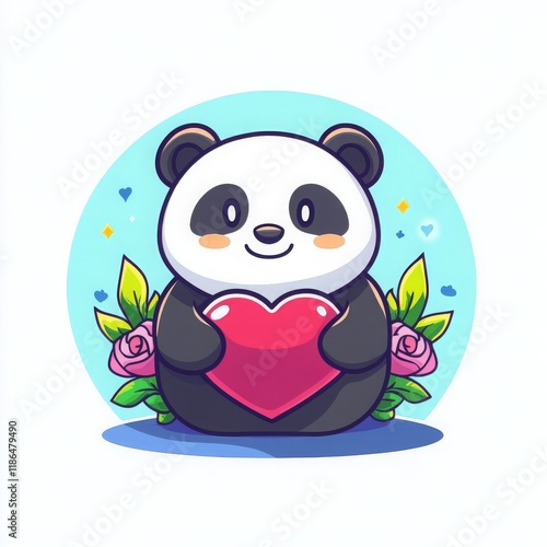 © Orawan, Naklejka premium Adorable Panda Bear Holding Heart Valentine s Day Cartoon Illustration Cute Animal Graphic Design