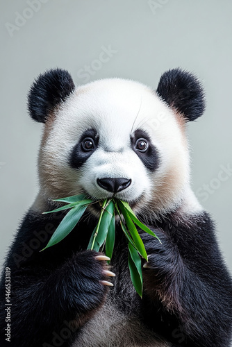 © Vovmar, Naklejka premium Adorable panda chewing bamboo close-up