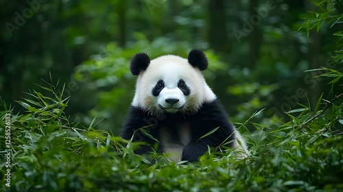 © artzone, Fototapeta premium Adorable Panda Cub Amidst Lush Bamboo Forest