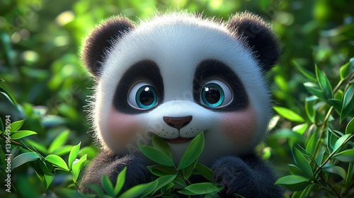 © dwphtra, Fototapeta premium Adorable Panda Cub Amidst Lush Greenery