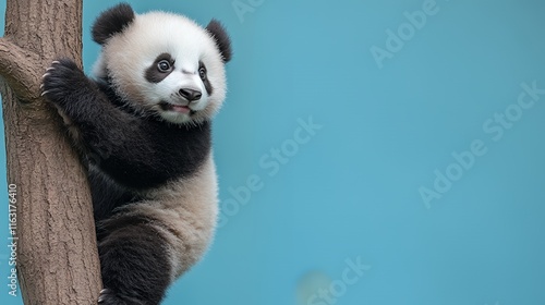 Fototapeta premium Adorable Panda Cub Climbing a Tree