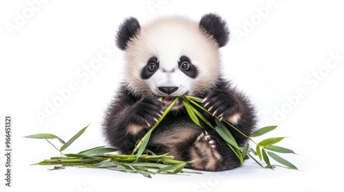 Naklejka premium Adorable Panda Cub Enjoying Bamboo