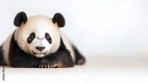 © ngamaz, Naklejka premium Adorable panda cub resting, gazing directly ahead
