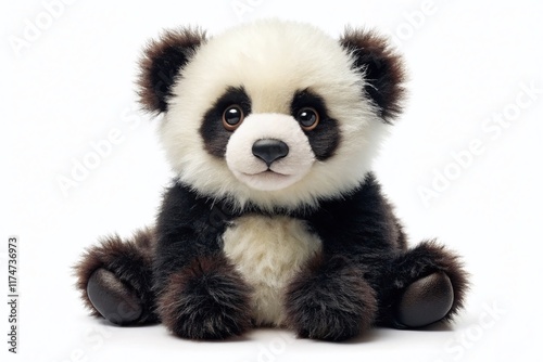 Naklejka premium Adorable Panda Plush Toy, Isolated White Background, Clipping Path, Soft Toy,...