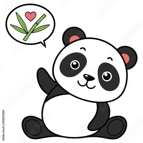 © Design_ mn, Obraz premium Adorable Panda Waving Hand with Bamboo and Heart Bubble on Transparent Background