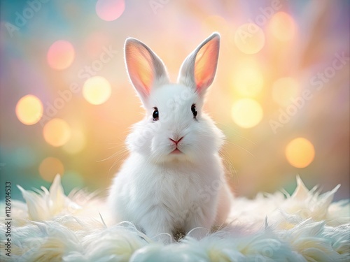 © nick, Obraz premium Adorable Pastel Bunny Photography: Soft White Rabbit on a Dreamy Background