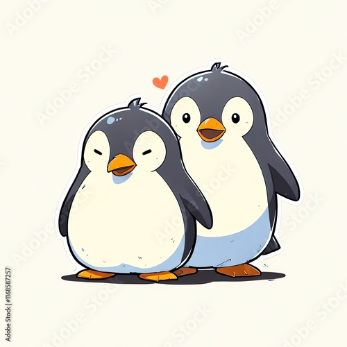 Naklejka premium Adorable Penguin Couple: A Cartoon Illustration of Two Penguins in Love