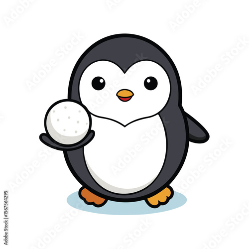 Obraz premium Adorable Penguin Holding a Snowball Outline Style