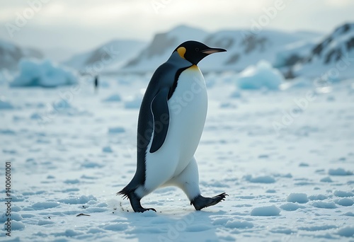 Fototapeta premium Adorable Penguin Walking Through Snowy Landscape