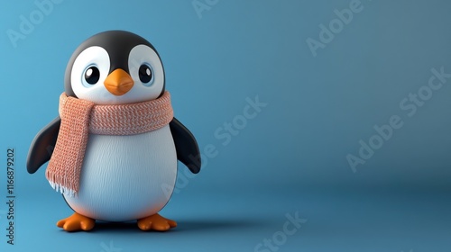 © Penatic Studio, Fototapeta premium Adorable Penguin Wearing A Knitted Scarf Against Blue Background