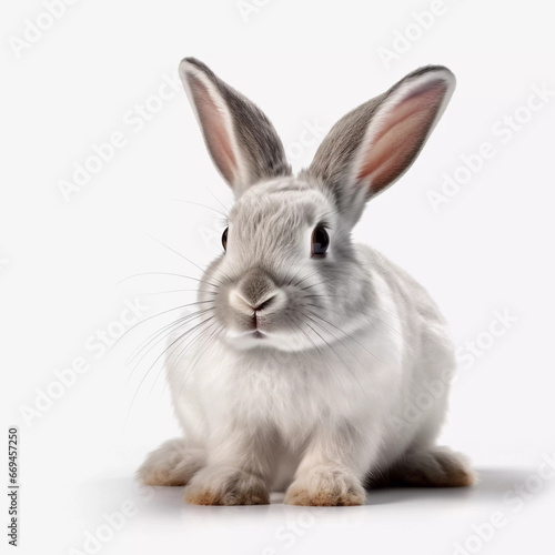 Fototapeta premium Adorable Petite Bunny White grey : A Charming Rabbit Isolated on White Background AI