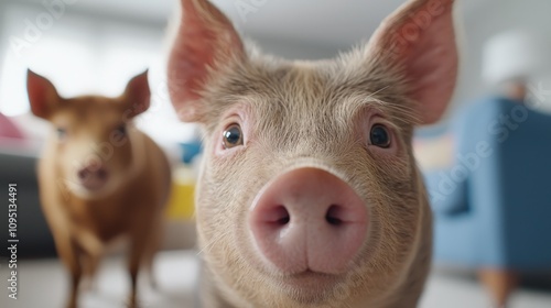 Fototapeta premium Adorable Piglets Indoor Home Pets Close Up Portrait