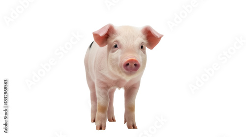 Fototapeta premium Adorable pink piglet standing isolated on transparent background, cute baby...
