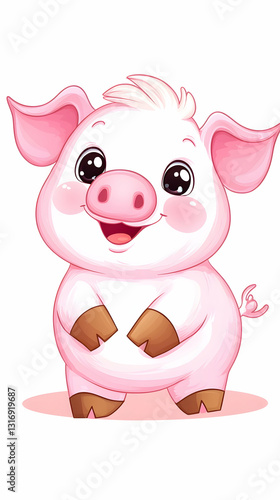 © Nur, Naklejka premium Adorable pink piglet standing smiling big eyes Cute cartoon illustration