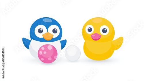 © Artajar, Fototapeta premium Adorable Pixelated Avian Friends A Cheerful Penguin and a Playful Duck Ready for Fun A Whimsical Illustration with Pastel Tones