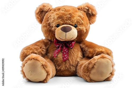 Fototapeta premium Adorable Plush Teddy Bear with a Red Bow Tie