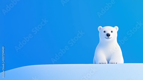 Fototapeta premium Adorable polar bear against a bright blue background, showcasing its charm...