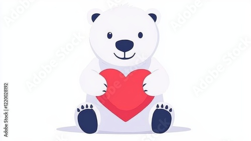 © Big9869, Naklejka premium Adorable Polar Bear Holding Red Heart Valentine Illustration