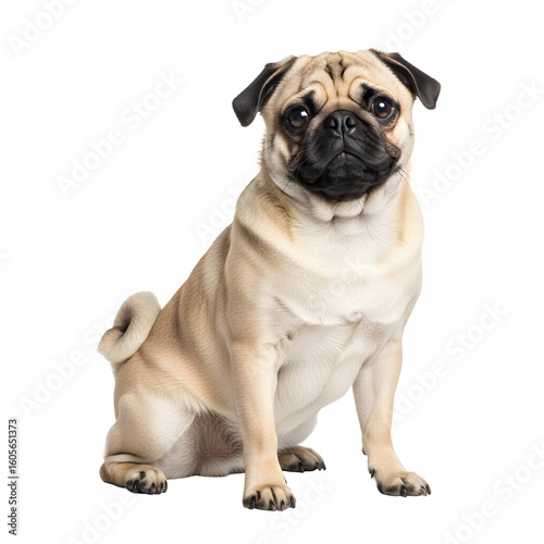 © tya, Fototapeta premium Adorable Pug Dog Sitting Isolated on White Background.