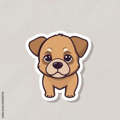 Fototapeta premium Adorable Pup Sticker: Cute cartoon dog sticker with captivating eyes and a warm, inviting presence. Perfect for adding charm to any surface.