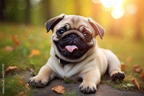Obraz premium Adorable puppy pug smile and happiness. Purebred dog. Generative AI