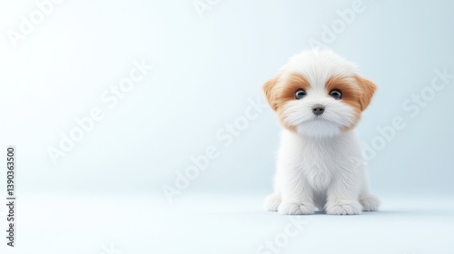 © MAKASIHMAS SIDNEY, Obraz premium Adorable puppy, sitting, light background