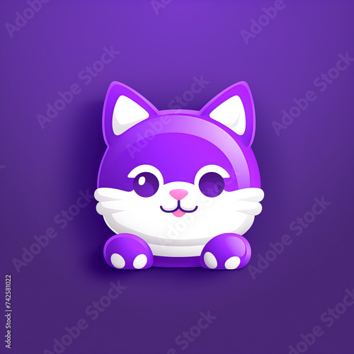 © Outsiderzone, Obraz premium Adorable Purple Cartoon Kitten with Sparkling Eyes created with Generative AI technology