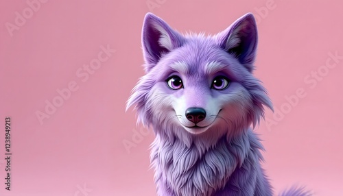 Naklejka premium Adorable Purple Wolf Digital Art Pink Background