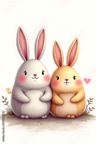 Fototapeta premium Adorable rabbit pair whimsical scene digital art soft colors cute design...