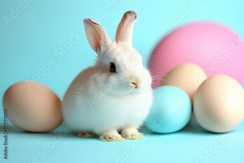 Obraz premium Adorable Rabbit With Easter Eggs on Colorful Background