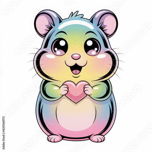 Naklejka premium Adorable Rainbow Hamster Holding a Heart Illustration Perfect for Childrens Books and Valentines Day Cards