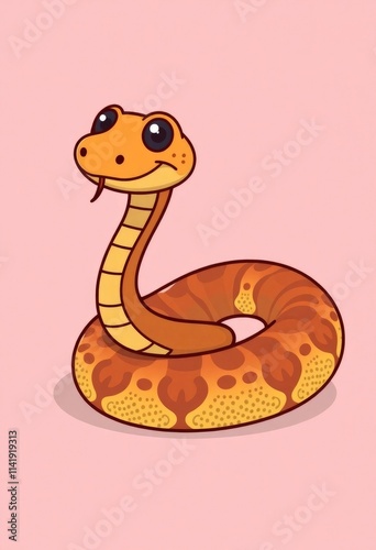 © VisualPro, Naklejka premium Adorable Rattlesnake Cartoon Flashcards Clipart Isolated on Soft Vibrant Color Background. Suitable for animal flashcard, alphabet flashcards, Montessori Flashcards